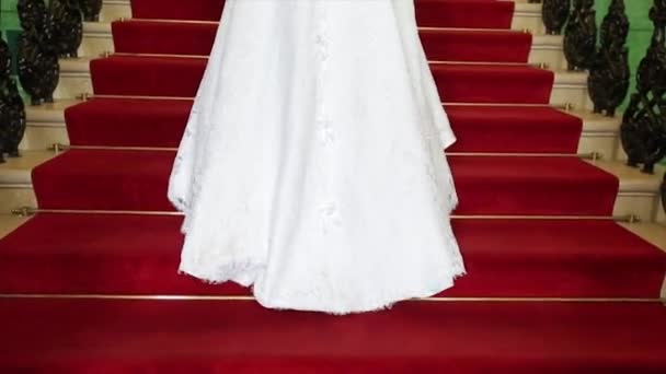 Beautiful Bride In Magnificent Dress Going Up The Stone