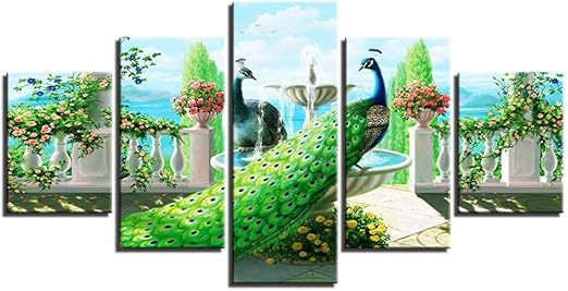 Amazon Com Wall Art Painting 5 Piece Hd Peacock Fountain