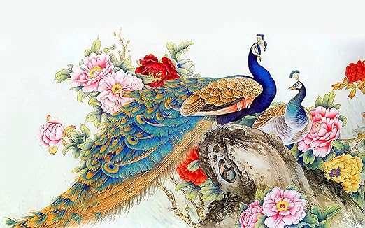 Amazon Com Elegant Peacock Fabric Cloth Rolled Wall Poster Print