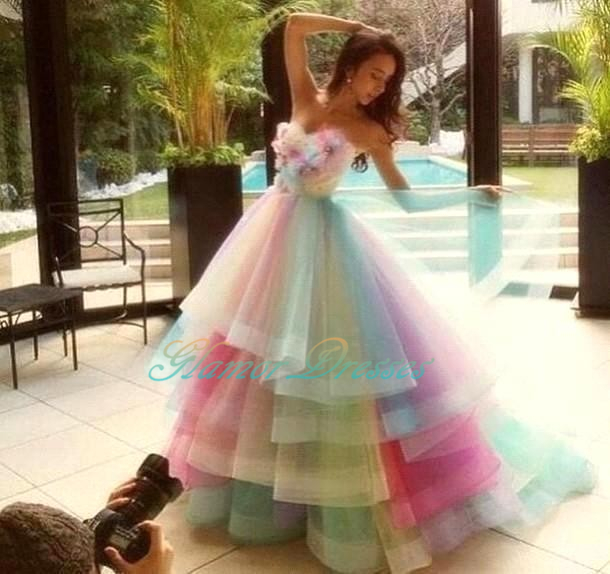 Pastel Prom Rainbow Wedding Dress Colorful Wedding